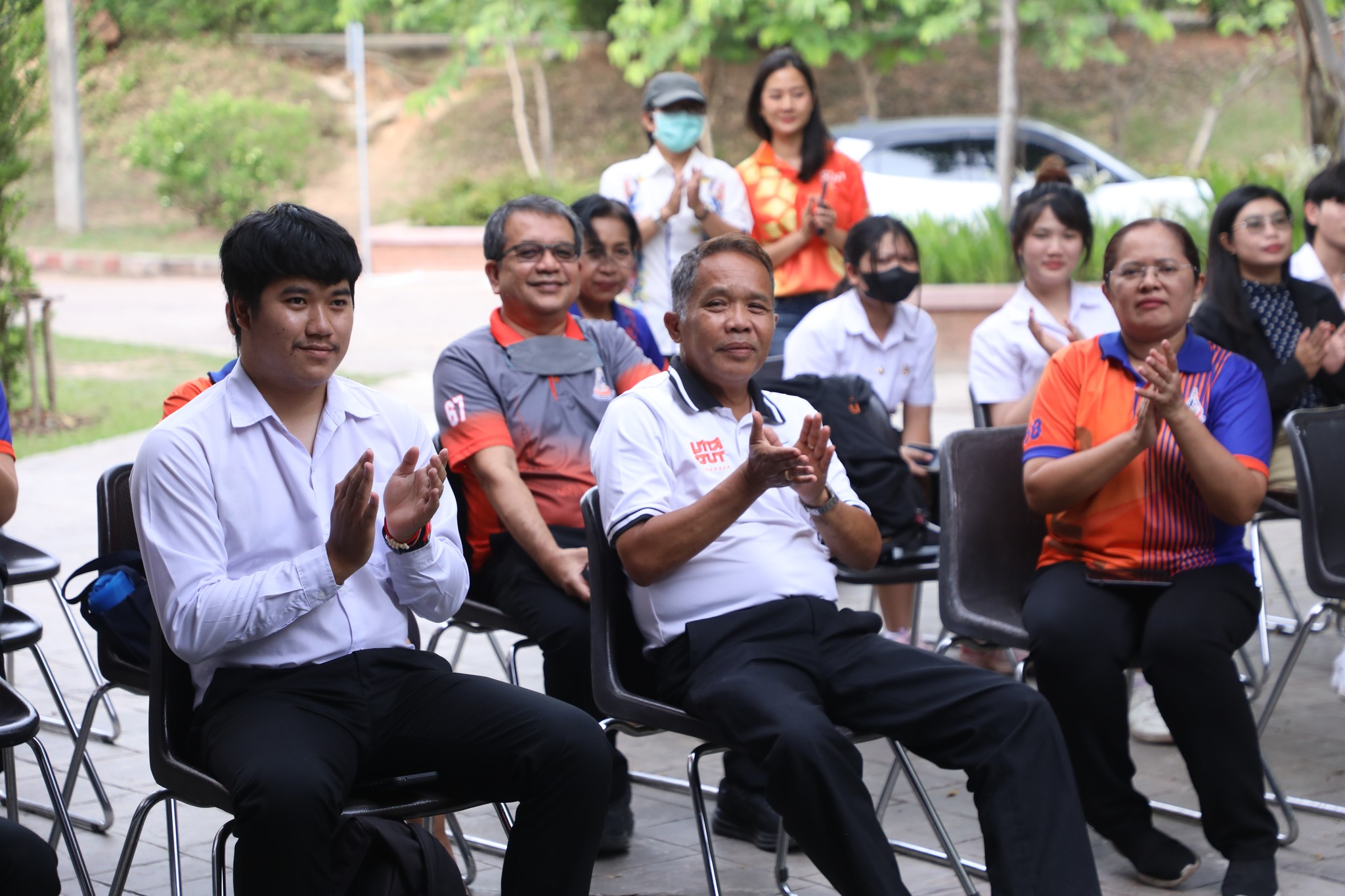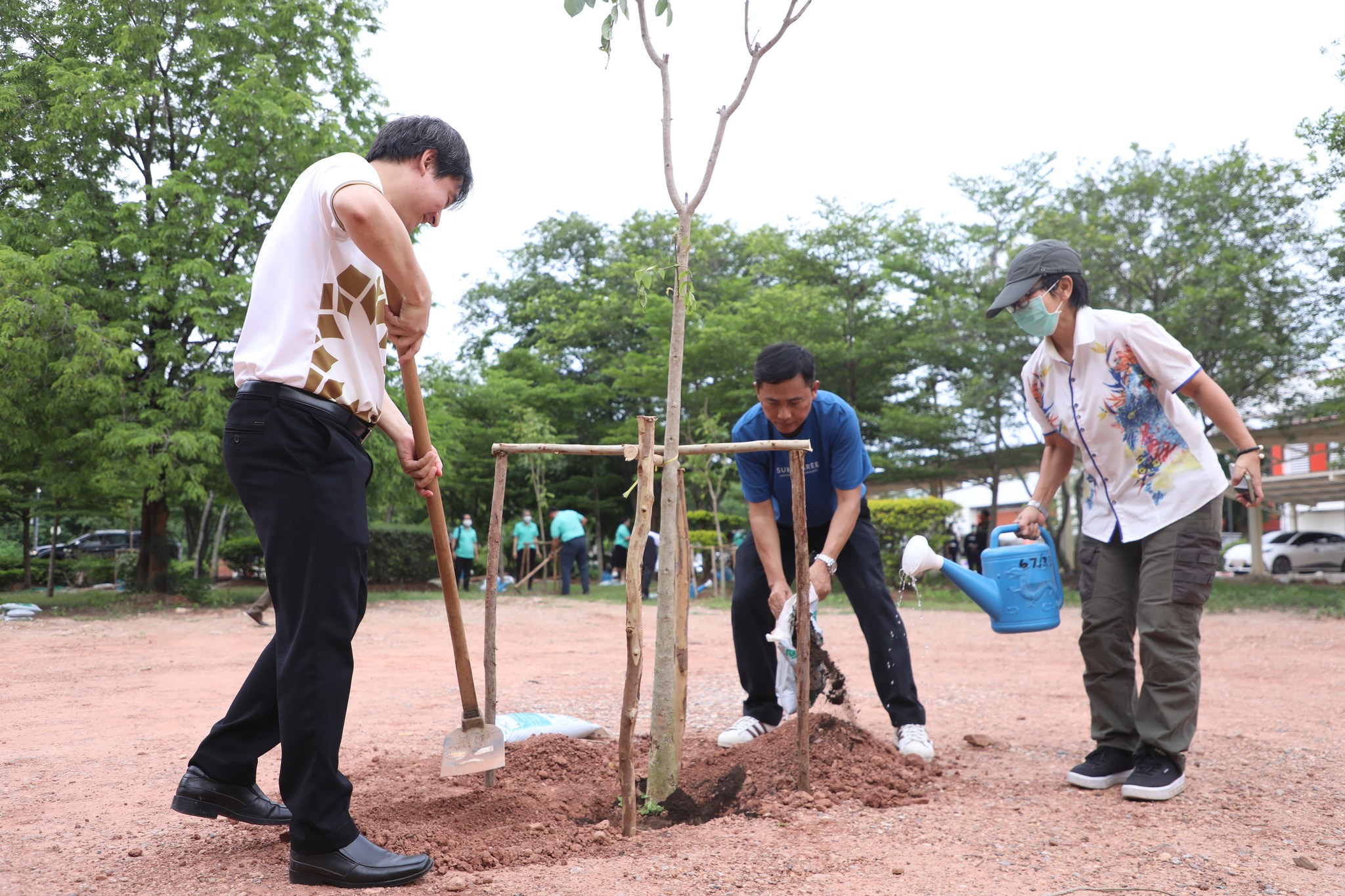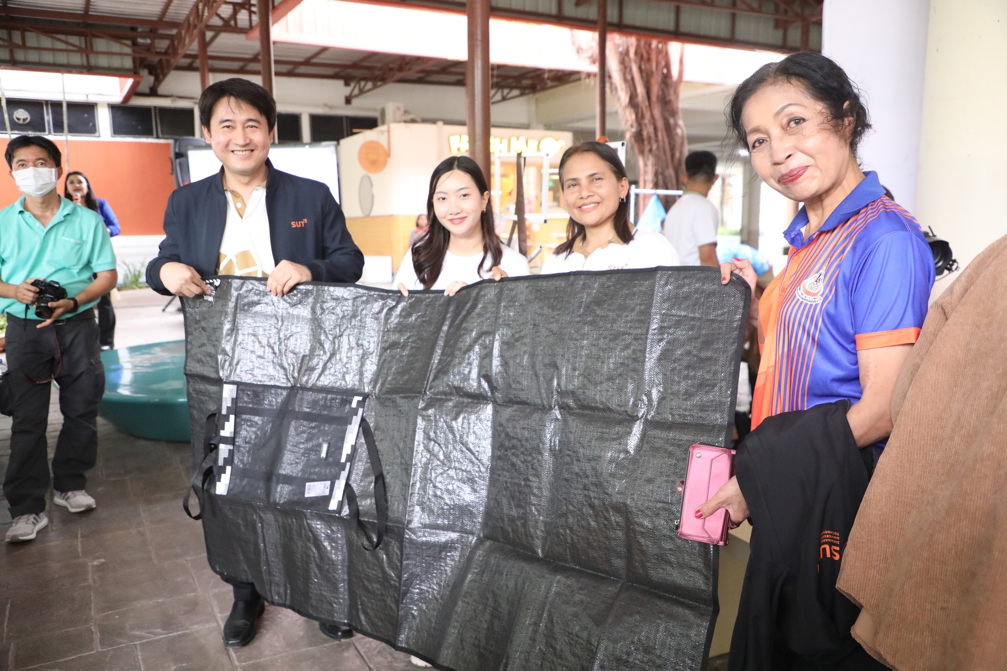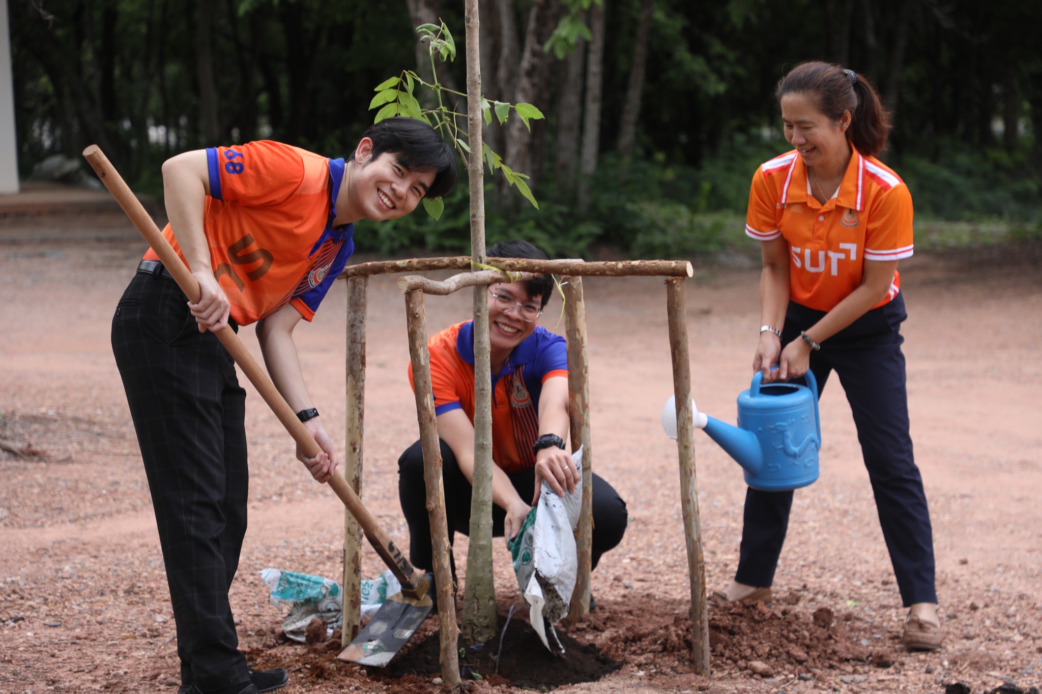 The demonstration included a practical demonstration of transforming white foam waste into concrete paving to enhance the beauty of the garden area around the integrated academic building. The event also included the launch of the "SUT Green Parking" project, a BTS Skytrain stop, awards for the top-selling recycled material bank member, the SUT Energy Challenge #2 competition for energy-saving buildings within Suranaree University of Technology, and tree-planting activities to increase green spaces around the integrated academic building. Furthermore, there was an exhibition on environmental issues and sustainable development. The event received cooperation from the Environmental Unit, Energy Management and Conservation Unit, Landscape Unit, Facilities Unit, Public Relations Unit, Student Entrepreneurship Development Center (SEDA), the Center of Excellence in Biomass, Asst. Prof. Dr. Uthai Meekham, and the Environmental Conservation Club. Importantly, all SUT students and staff who prioritize the environment participated in the activities.