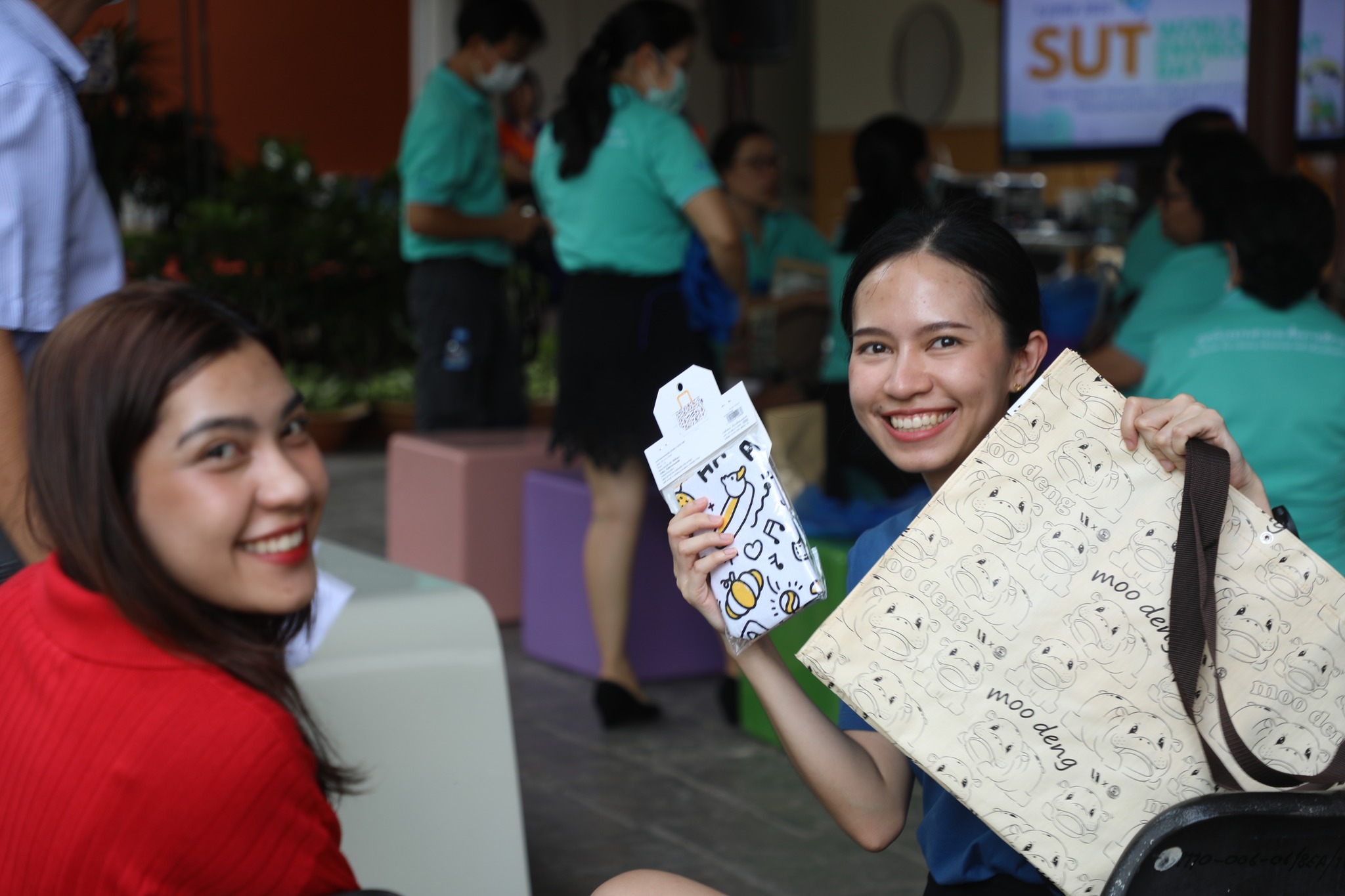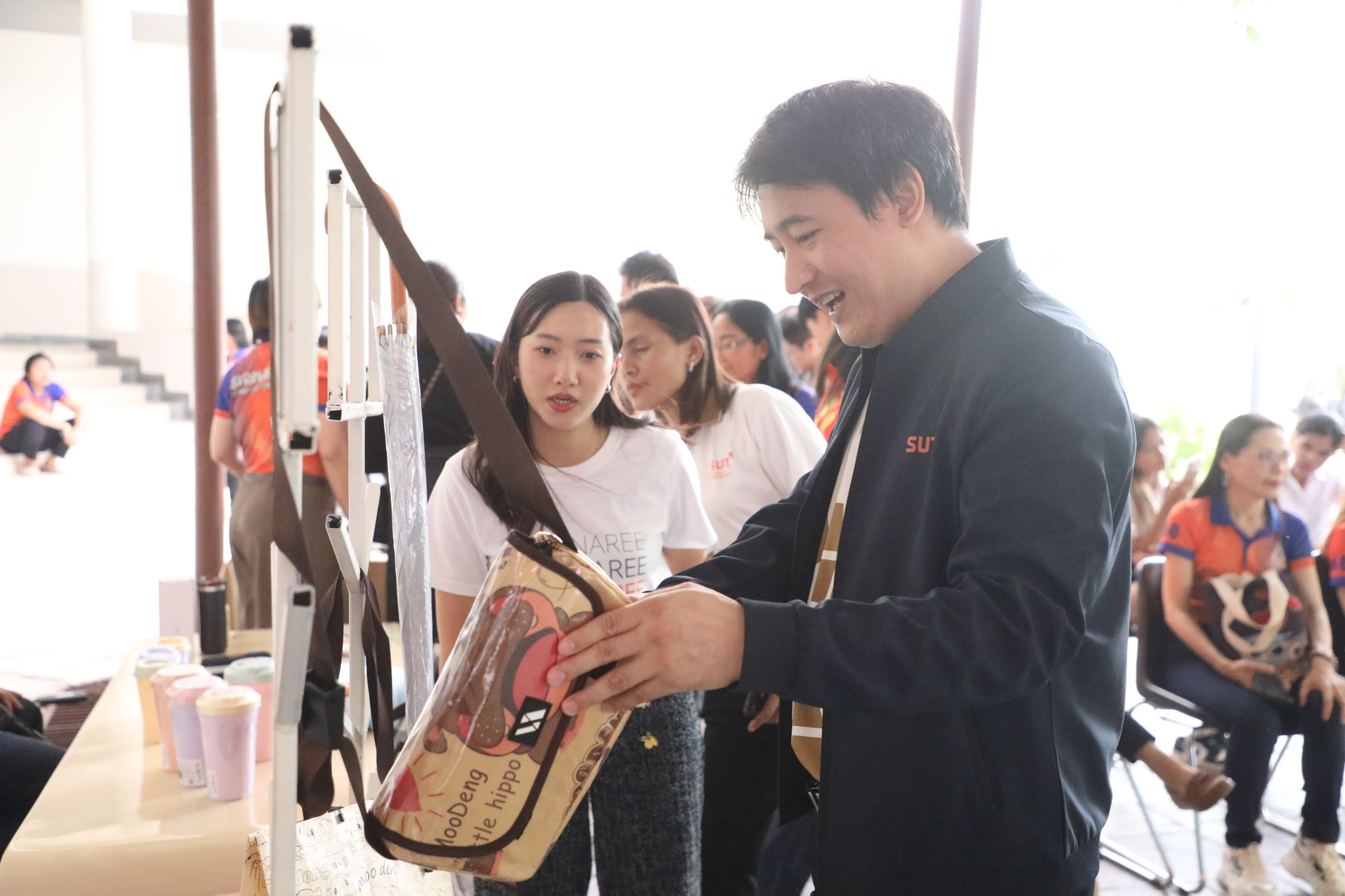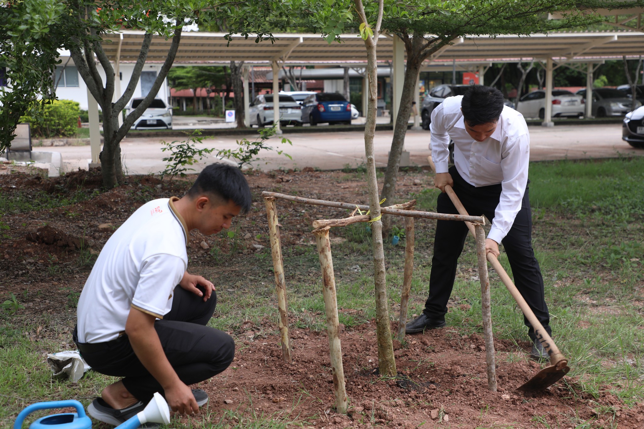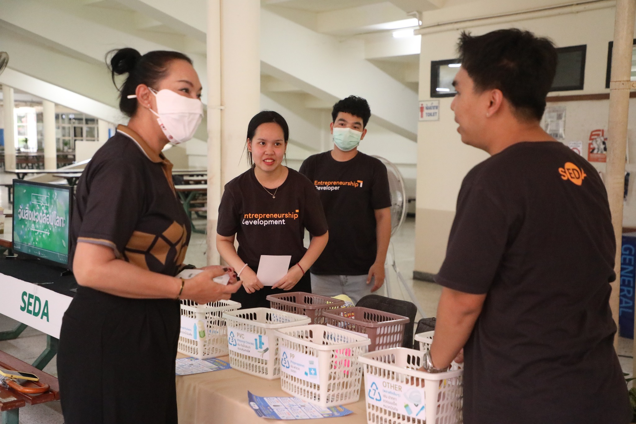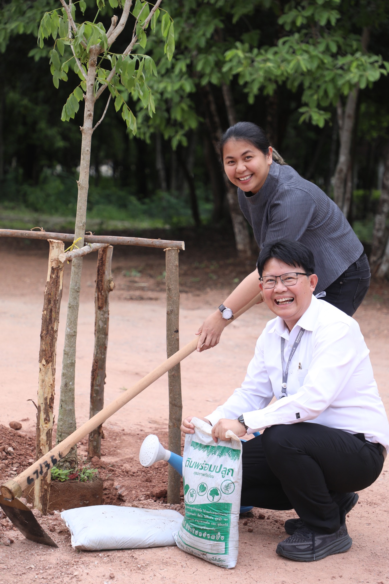 The demonstration included a practical demonstration of transforming white foam waste into concrete paving to enhance the beauty of the garden area around the integrated academic building. The event also included the launch of the "SUT Green Parking" project, a BTS Skytrain stop, awards for the top-selling recycled material bank member, the SUT Energy Challenge #2 competition for energy-saving buildings within Suranaree University of Technology, and tree-planting activities to increase green spaces around the integrated academic building. Furthermore, there was an exhibition on environmental issues and sustainable development. The event received cooperation from the Environmental Unit, Energy Management and Conservation Unit, Landscape Unit, Facilities Unit, Public Relations Unit, Student Entrepreneurship Development Center (SEDA), the Center of Excellence in Biomass, Asst. Prof. Dr. Uthai Meekham, and the Environmental Conservation Club. Importantly, all SUT students and staff who prioritize the environment participated in the activities.
