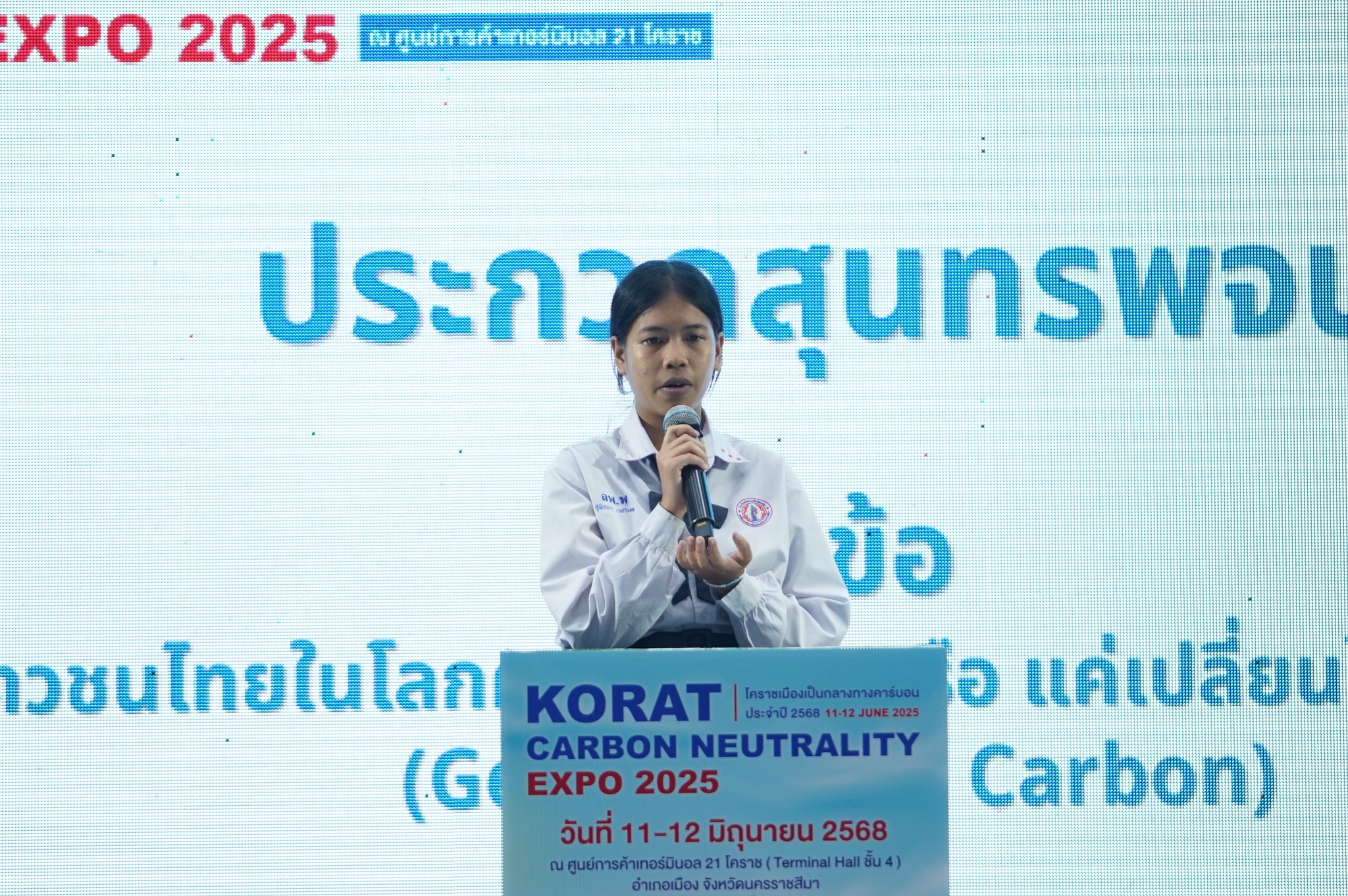 June 11-12, 2025 Suranaree University of Technology, in collaboration with the Nakhon Ratchasima Provincial Chamber of Commerce and Nakhon Ratchasima Province, organized the "Korat Carbon Neutrality Expo 2025" at Terminal Hall, 4th floor, Terminal 21 Korat Shopping Center. Mr. Somkiat Wiriyakulnan, Deputy Governor of Nakhon Ratchasima Province, presided over the opening ceremony, and Assistant Professor Dr. Pantip Piyatasananon, Acting Director of Technopolis, delivered a welcoming speech. Distinguished guests from the public and private sectors, educational institutions, and the general public also attended.