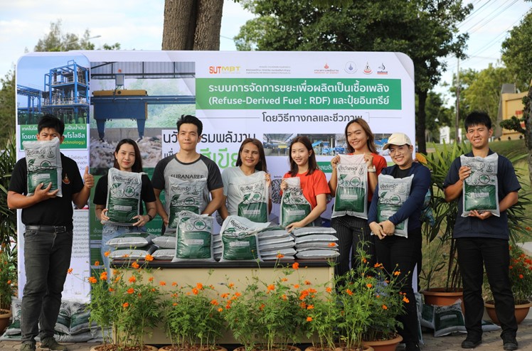 The university collects food waste from cafeterias and offices to be composted into organic fertilizer in the organic waste composting plant. The organic waste will be treated together with inorganic waste in the integrated waste management plant with Mechanical Biological Treatment (MBT) or Composting technology. Belt Sorting System Shreducer machine, fermentation system, and sieving machine to sort organic fertilizer and plastic. The process of processing waste into energy produces by-products of organic fertilizers and waste fuels. Refuse Derived Fuel (RDF) is sold to power plants. As for soil improvement materials, the quality of organic fertilizers has been used to replace the use of chemical fertilizers for landscaping.