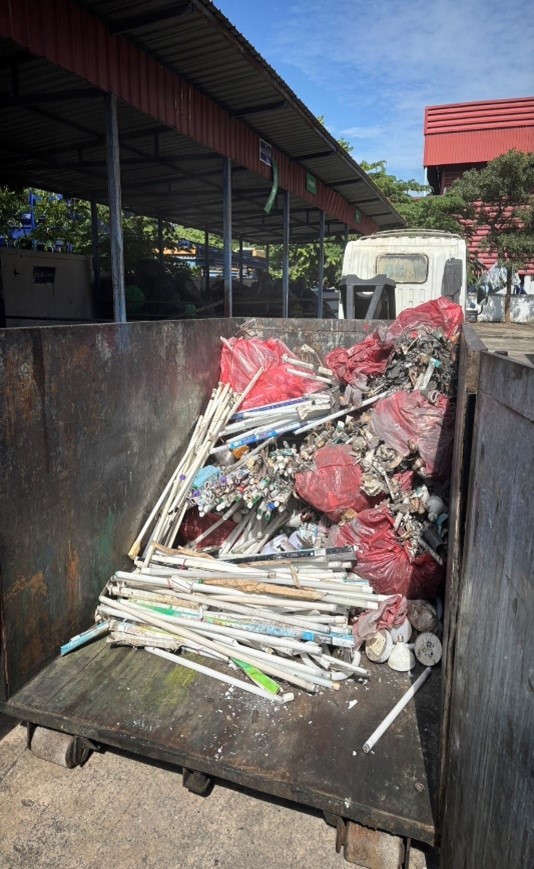 The university collects hazardous waste such as sky lamps and batteries. 380 kg/year is sent for disposal to agencies licensed by the Department of Industrial Works. Once a year, hazardous waste bins are organized. Classify buildings appropriately.